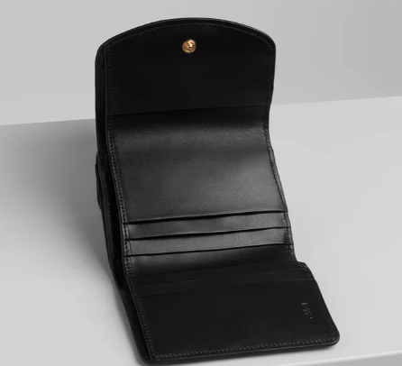 表面のブランドロゴも印象的で、内側にもさり気ないロゴがあり、持つ喜びを感じさせてくれる三つ折りコンパクト財布です。
